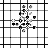 黒23と大きく開いて好形だが、右上辺の白模 様が圧迫となっている。