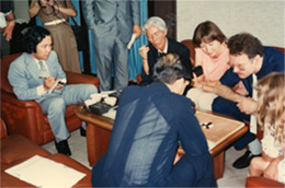 * この選手権の開催に際し、井川さんから日本連珠社に後援申請が出されましたが、国内普及もままならないのに、なぜいま国際普及なのか、と却下されています。当時、筆者はもっとも若い平理事でしたが、アゼンとする思いで「なぜ、井川さんの思いを受け止めないのか」と激しく迫りましたが、残念ながらまるで取り上げてもらうことはありませんでした。間もなく、井川さんが連珠界から去ってしまわれましたが、今なお、悔やまれる出来事です。このこともあって、筆者が国際普及に乗り出すときは相当の覚悟を決めてスタートを切ったのです。
