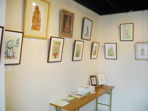 30年前にご夫婦で愛宕念仏寺の羅漢さんに取り組まれたMさん。直後にご主人を亡くされるという悲運に見舞われました。この日、画廊の羅漢さんとの思わぬ出会いに「主人がいる!」と感極まった悲鳴に近い声を漏らされた。